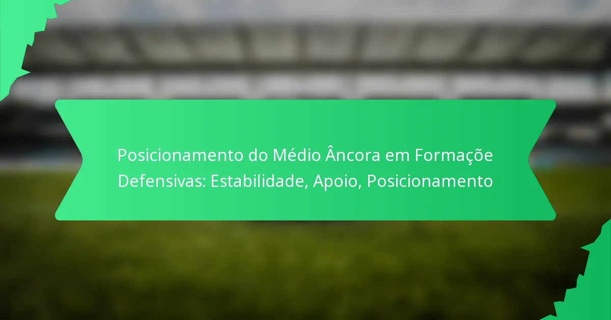 As estratégias de posicionamento eficazes para médios âncora concentram-se na manutenção da estabilidade defensiva e no fornecimento de apoio aos companheiros de equipa. Estas estratégias envolvem compreender os princípios de formação, ajustar-se às táticas do adversário e utilizar o espaço de forma eficiente para frustrar ataques.