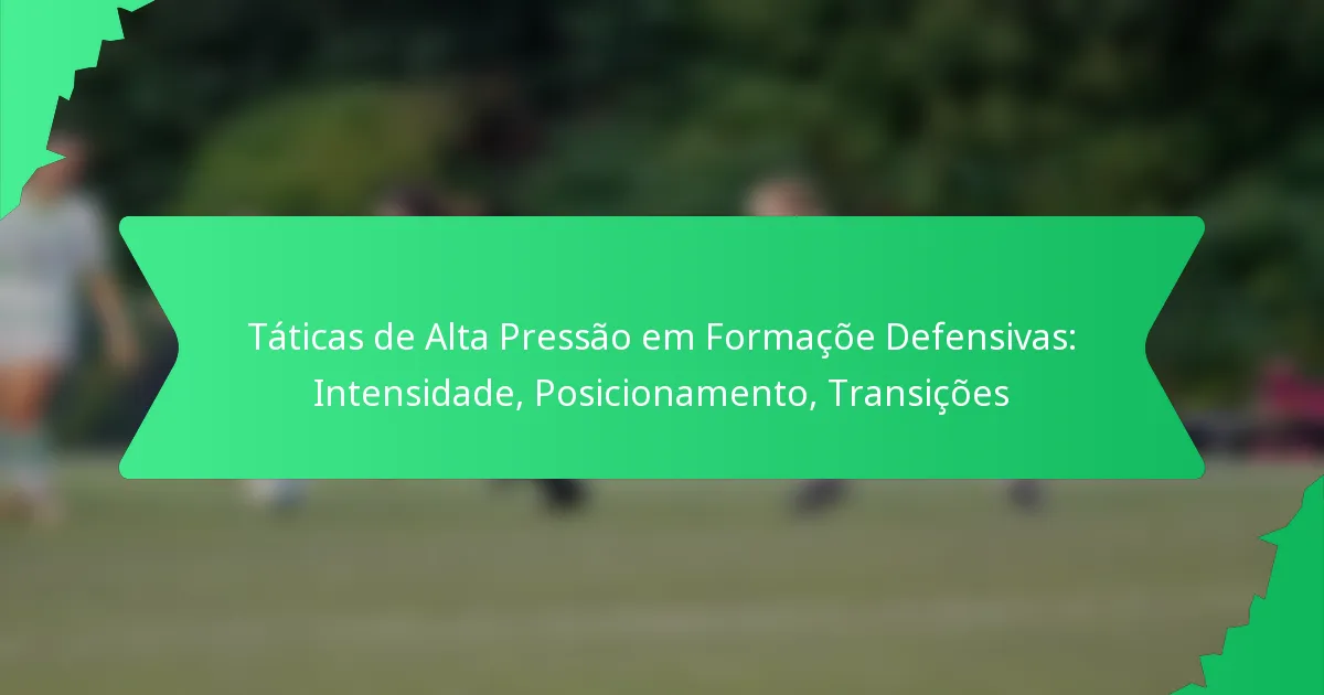 As táticas de pressão alta em formações defensivas concentram-se em aplicar pressão intensa sobre os adversários perto da área, visando interromper o seu jogo de construção e recuperar rapidamente a posse de bola. Esta estratégia depende do posicionamento e da coordenação dos jogadores para forçar perdas de posse, enfatizando a importância de manter a compactação e a consciência. A eficácia destas táticas é significativamente influenciada pela intensidade com que os jogadores se envolvem, impactando a sua capacidade de transitar rapidamente durante o jogo.