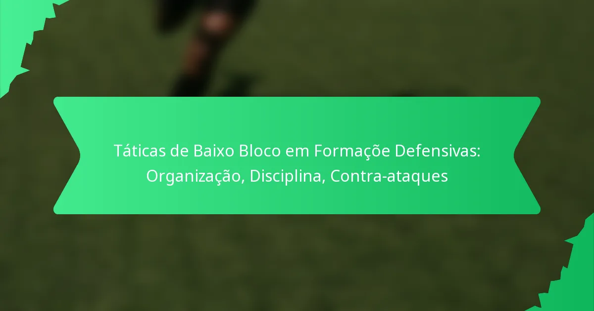 As táticas de bloco baixo em formações defensivas referem-se a uma estratégia onde uma equipa posiciona os seus jogadores profundamente na sua própria metade para limitar as opções de ataque do adversário. Esta abordagem enfatiza a organização e a disciplina, visando absorver pressão e criar oportunidades para contra-ataques.